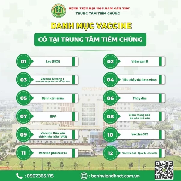 DANH MỤC CÁC LOẠI VẮC XIN ĐƯỢC CUNG CẤP TẠI TRUNG TÂM TIÊM CHỦNG BỆNH VIỆN ĐẠI HỌC NAM CẦN THƠ