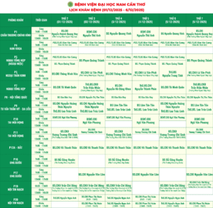 Lịch Khám Của Các Bác Sĩ Tại Bệnh Viện Đại Học Nam Cần Thơ 01/12/2025-06/12/2025