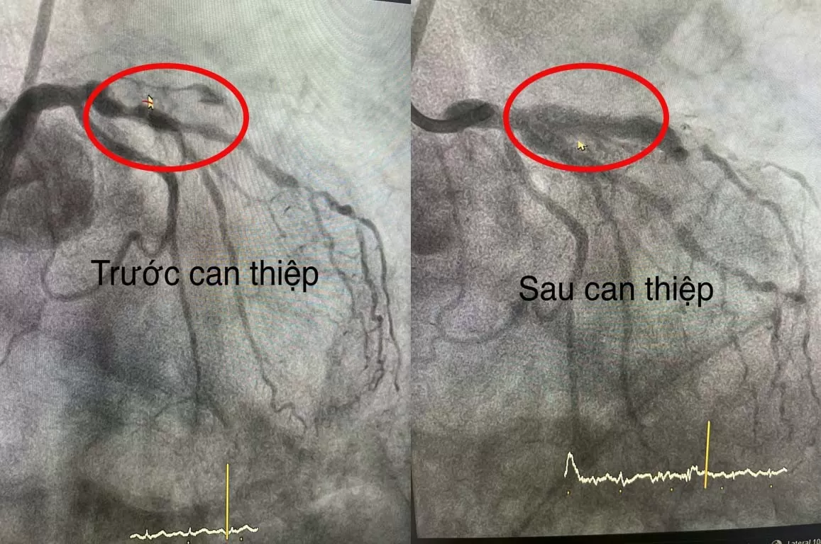 ☘ Bs CKII Trần Chí Dũng – P Trưởng khoa Tim mạch và Can thiệp tim mạch cùng ekip trực Bệnh viện Đại học Nam Cần Thơ đã can thiệp đặt 2 stent vào LAD cho bệnh nhân bị tắc ngay lỗ phát động mạch vành trái và vôi hóa rất nặng. Sau can thiệp mạch vành của bệnh nhân đã được tái thông hoàn toàn. Hiện bệnh nhân đã qua cơn nguy kịch và dần ổn định lại sức khỏe.