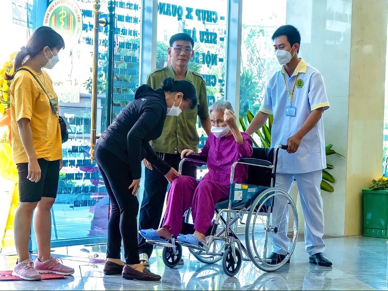 Nhân viên Bệnh viện Đại học Nam Cần Thơ tận tình hỗ trợ bệnh nhân lớn tuổi.