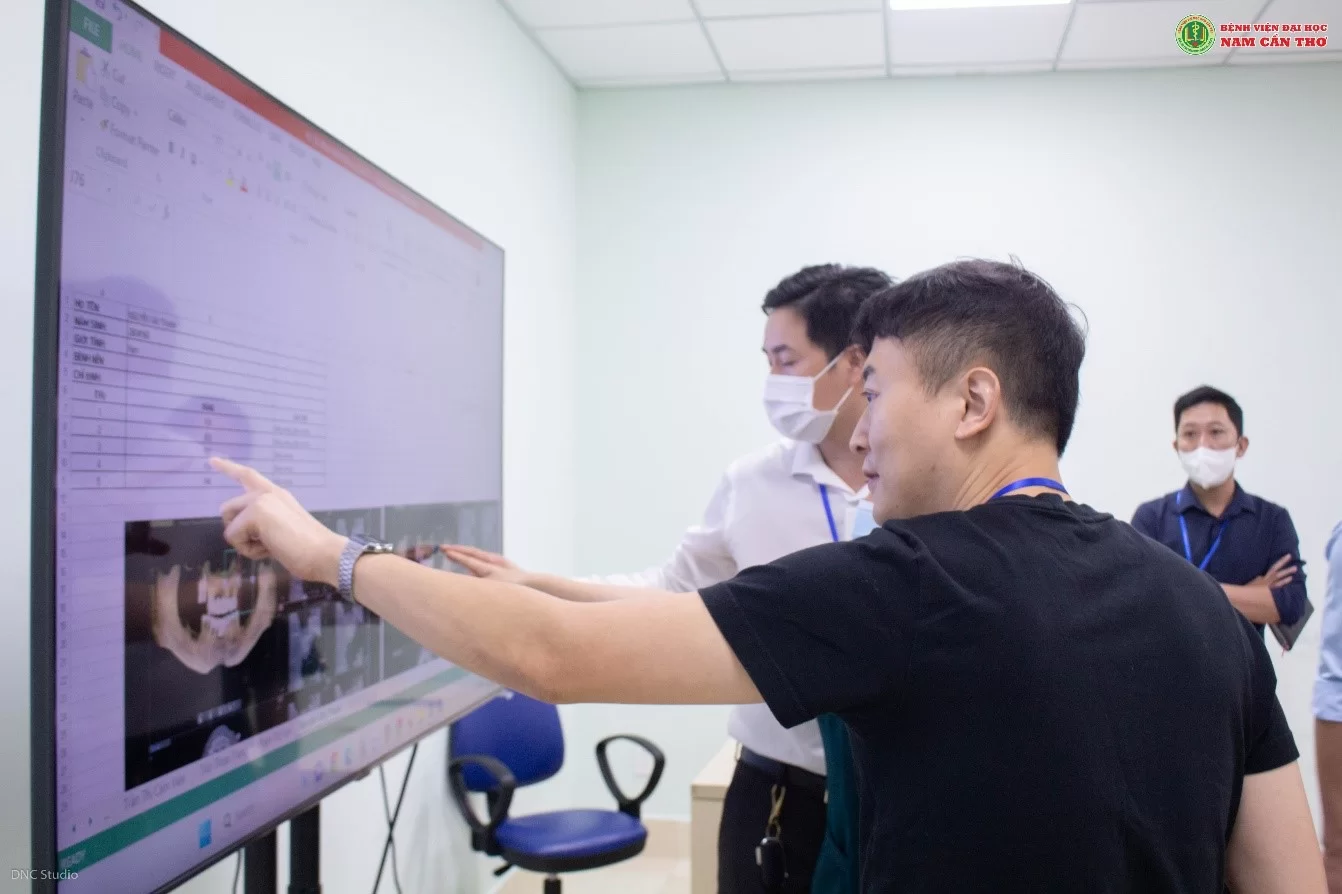 Các chuyên gia đang thực hiện công tác hội chẩn trước khi thực hiện cấy ghép Implant. (Ảnh: DNC Studio)