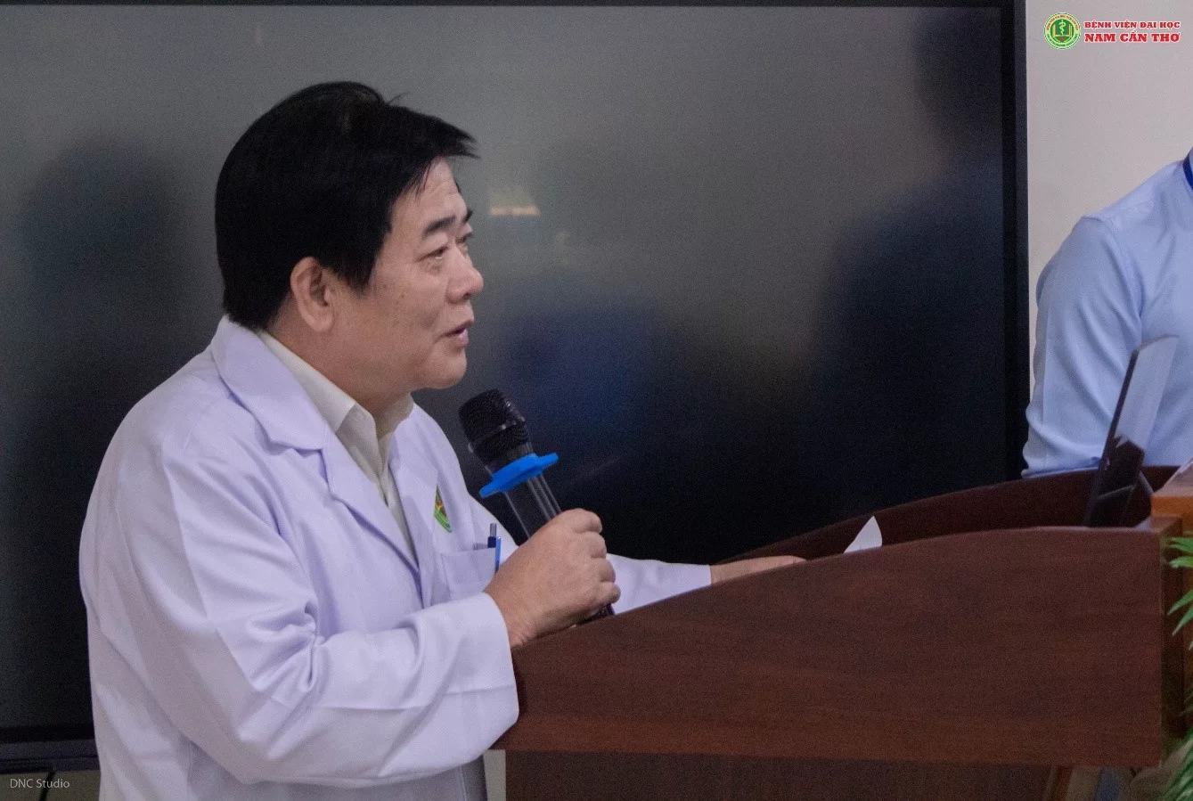 PGS. TS. BS. Đàm Văn Cương – Giám đốc Bệnh viện Đại học Nam Cần Thơ cũng có đôi lời phát biểu. (Ảnh: DNC Studio)