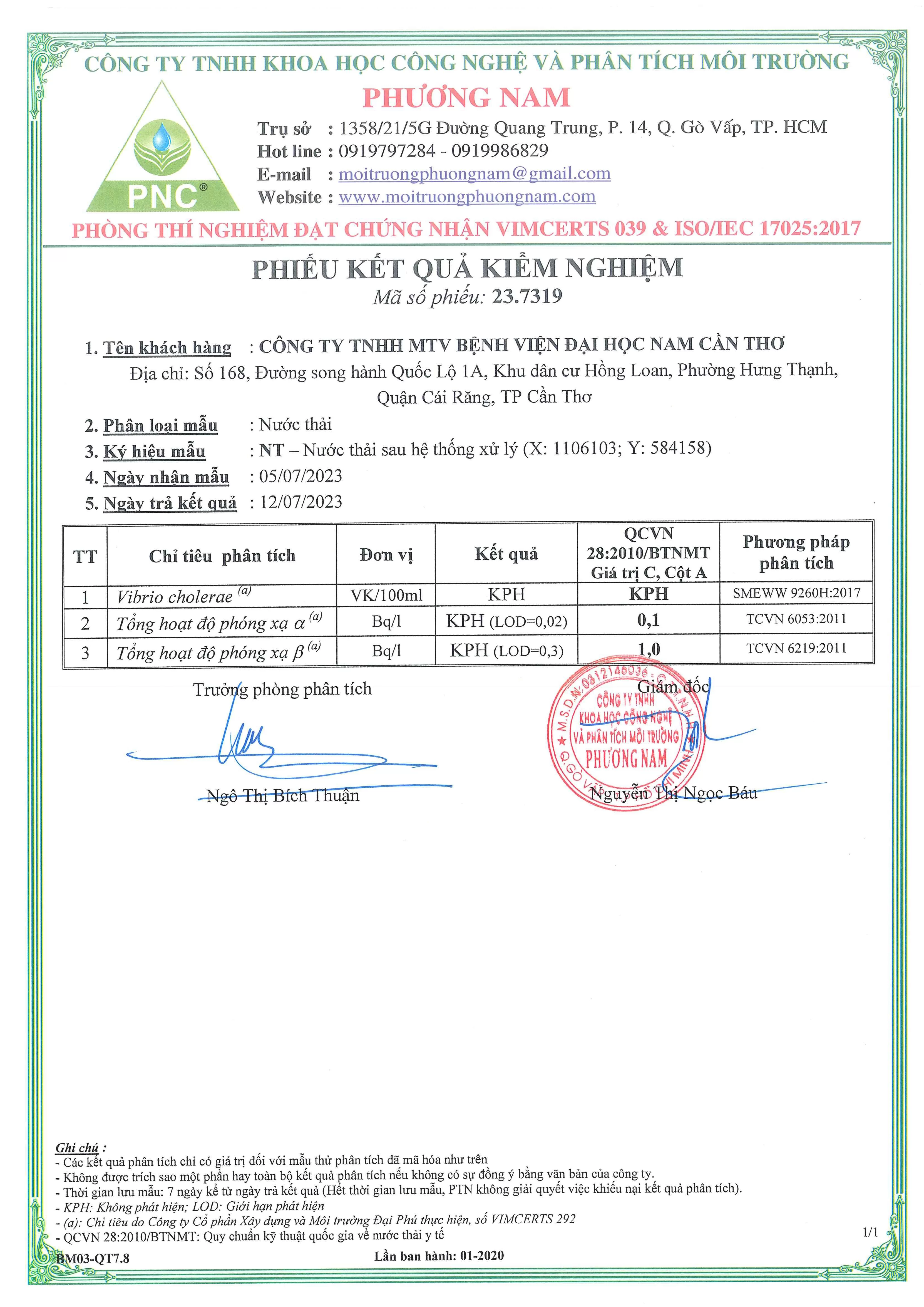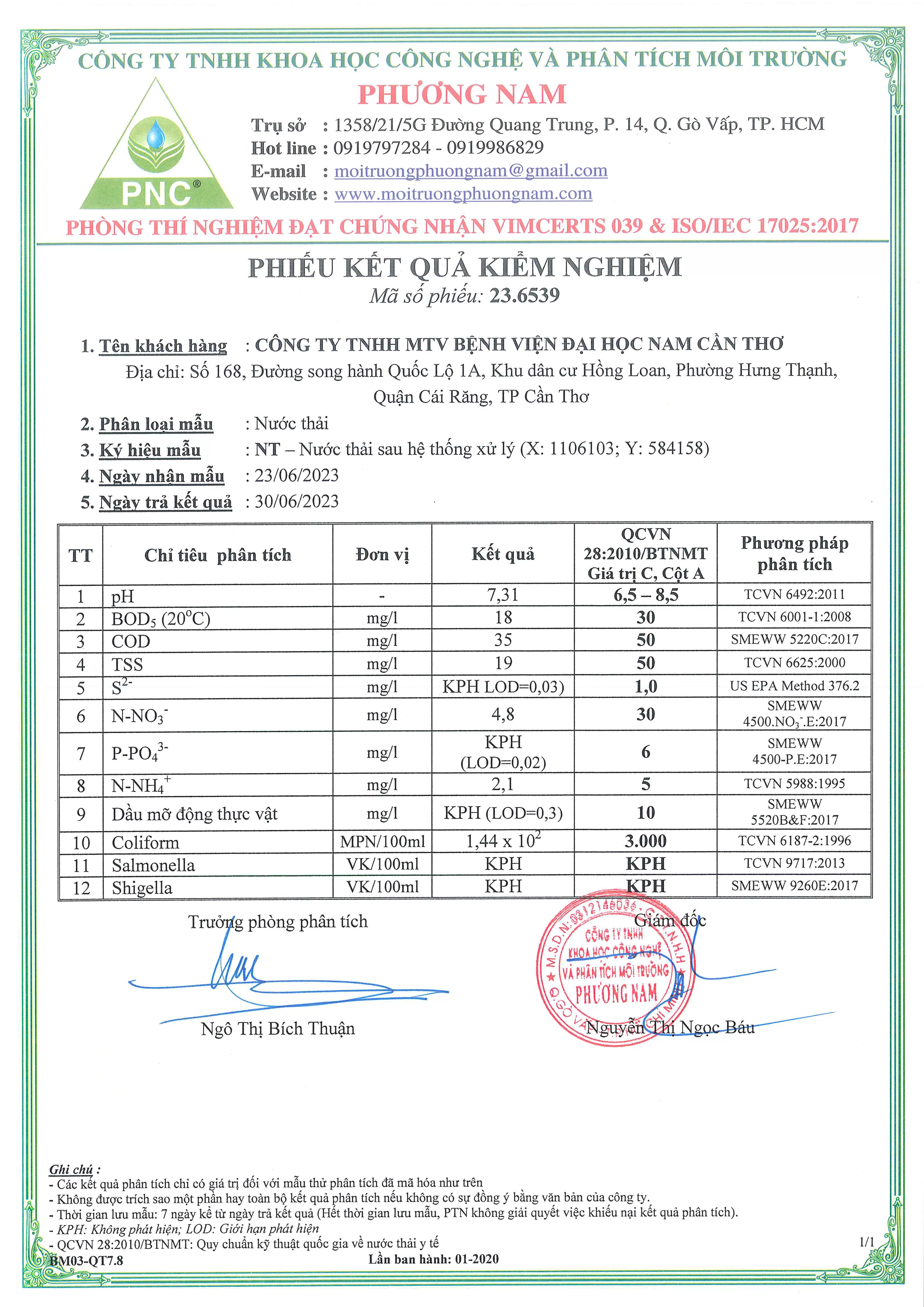 Kết quả quan trắc nước thải quý II, năm 2023