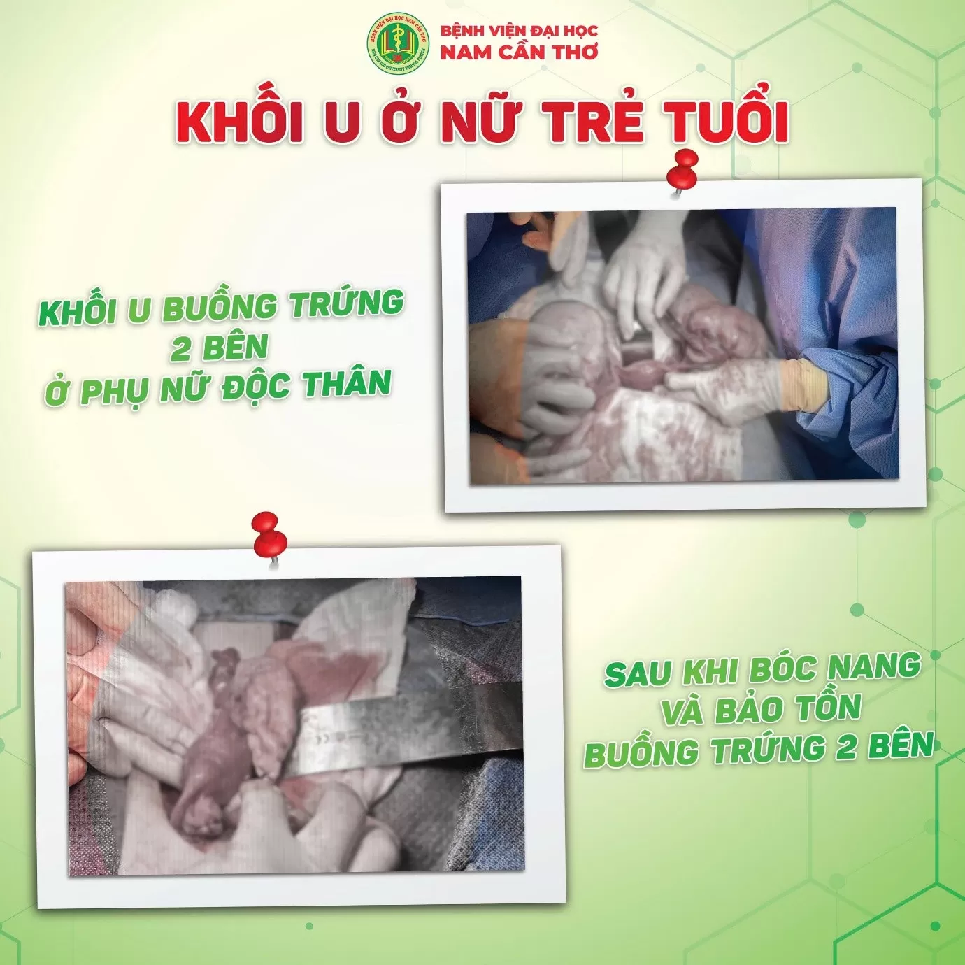 Ekip phẫu thuật đã bóc tách toàn bộ khối u và bảo tồn hai buồng trứng, nhằm duy trì nội tiết và khả năng sinh sản cho( Chị T).
