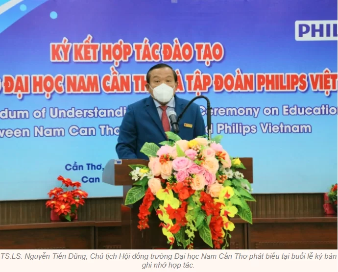Phát biểu tại lễ ký kết, TS. LS. Nguyễn Tiến Dũng – Chủ tịch HĐQT Trường Đại học Nam Cần Thơ cho biết: “Nhằm đáp ứng nhu cầu thực hành – thực tập cho sinh viên của trường, góp phần hoàn thiện kỹ năng và nâng cao tay nghề, trường Đại học Nam Cần Thơ đặc biệt chú trọng việc đẩy mạnh hợp tác với các doanh nghiệp, thực hiện có hiệu quả bài toán giải quyết việc làm cho sinh viên sau khi tốt nghiệp. Chiến lược của trường là hợp tác với nhiều đối tác trong và ngoài nước tổ chức các buổi hội thảo tuyển dụng, các dự án thực tập cho sinh viên được cọ xát với “người thật, việc thật”. Trường cũng liên tục cập nhật, đổi mới chương trình đào tạo theo hướng bám sát thực tiễn, đáp ứng tốt nhất nhu cầu doanh nghiệp. Việc ký kết hợp tác đào tạo với công ty như Philips Việt Nam – cùng với bí quyết về công nghệ và hiểu biết sâu rộng về ứng dụng lâm sàng của họ- là một trong những chiến lược đào tạo của trường nhằm hoàn thiện các kiến thức và kỹ năng cho sinh viên, góp phần nâng cao chất lượng khám chữa bệnh và hiệu quả làm việc trong bệnh viện.”
