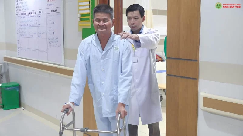 Tại đây, ông M được chẩn đoán hoại tử chỏm xương đùi (T) thoái hóa khớp háng (T) nên được tư vấn thay khớp háng toàn phần. Sau gần 1 tuần điều trị tại bệnh viện, bệnh nhân đã có thể đi lại và thực hiện tập vật lý trị liệu để nhanh chóng khôi phục vận động.