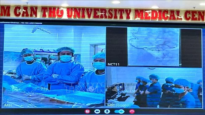 Ca chuyển giao kỹ thuật can thiệp tim mạch đầu tiên tại Bệnh viện Đại học Nam Cần Thơ. Ảnh: Ánh Tuyết – TTXVN
