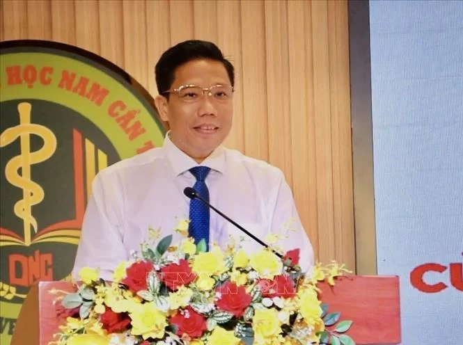 Tiến sĩ, Bác sĩ Nguyễn Tri Thức, Giám đốc Bệnh viện Chợ Rẫy thành phố Hồ Chí Minh phát biểu tại sự kiện.