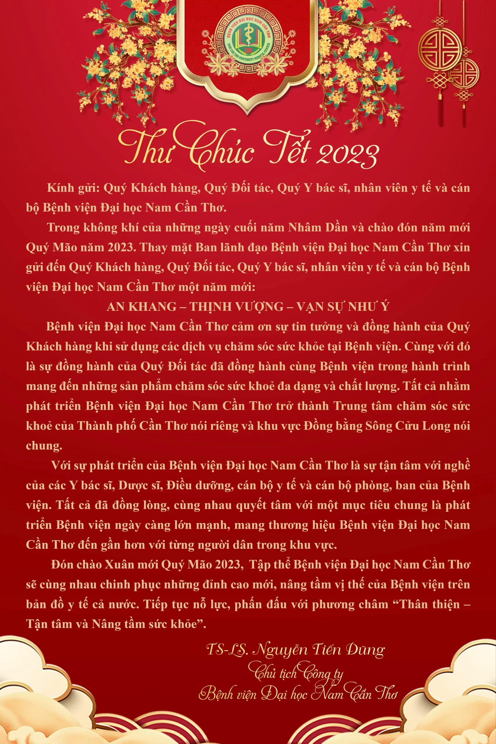 Thư chúc Tết của Chủ tịch Công ty Bệnh viện Đại học Nam Cần Thơ